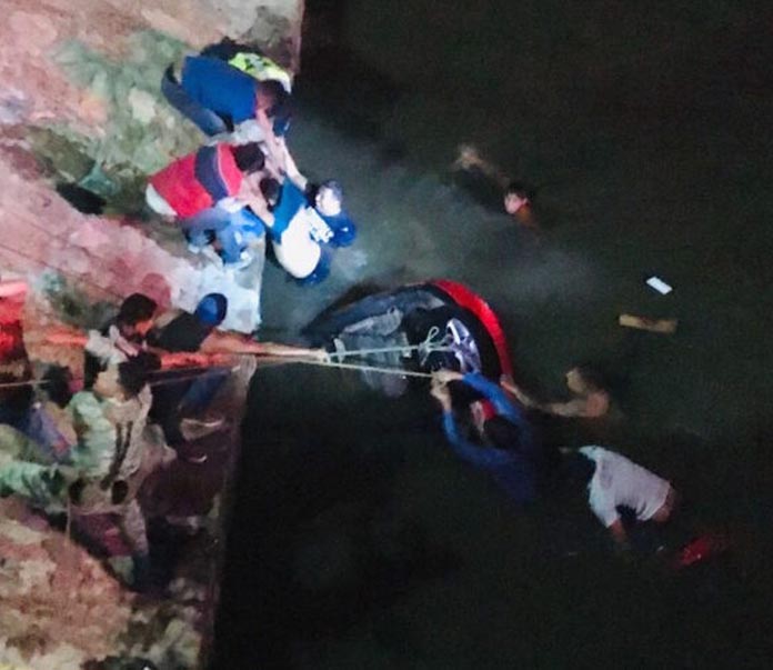 Al lugar acudieron elementos de Protección Civil y del cuerpo de bomberos, quienes rescataron de entre el agua a los ocupantes del carro compacto marca Seat color rojo, con placas para el Estado de Guanajuato; les dieron los primeros auxilios y reanimación a través de RCP, sin éxito.