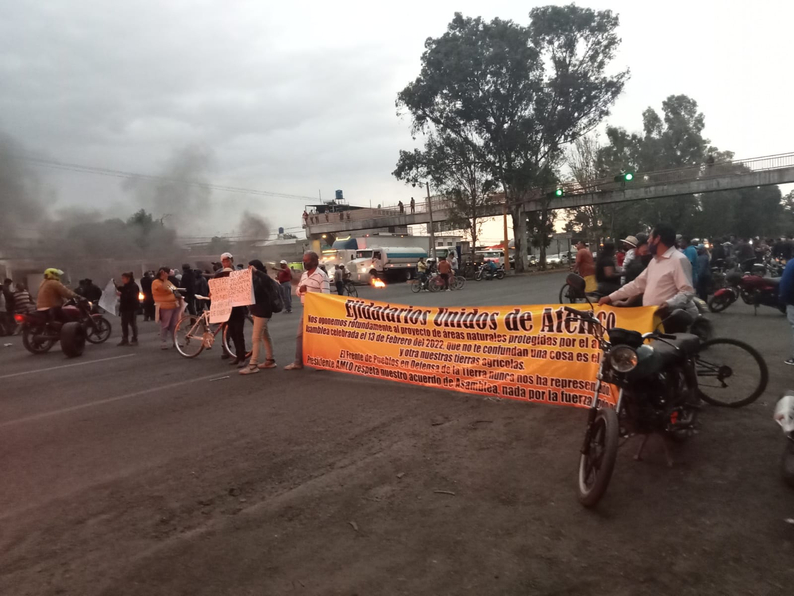 De forma violenta los ejidatarios encabezados por José Alejandro Santiago López, (Oaxaco) bloquearon la Carretera Federal Lechería-Texcoco a la altura de la entrada principal del municipio de San Salvador Atenco, quemando llantas y armados con palos bajo el pretexto de estar en contra de la ANP.