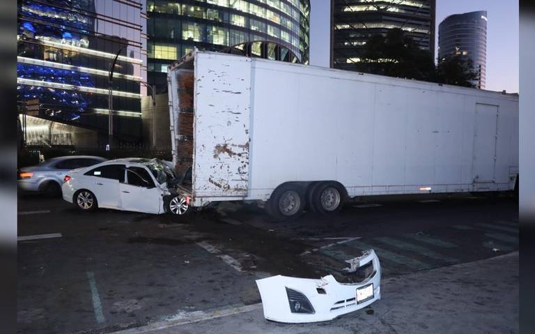 Un automóvil se impactó contra la parte trasera de un tráiler estacionado sobre avenida Paseo de la Reforma, a la altura del cruce con la calle Lieja, en la alcaldía Miguel Hidalgo.