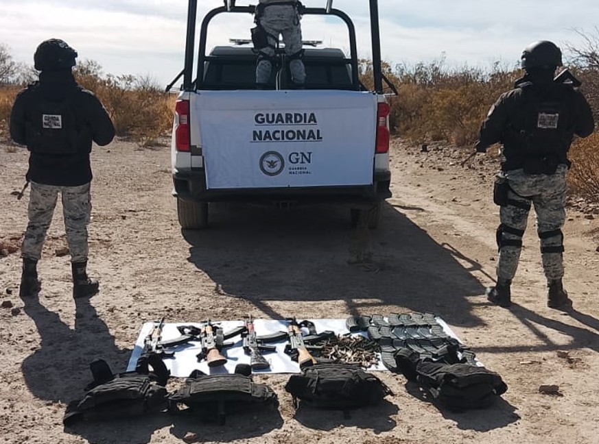 -En el municipio de Aldama, elementos de la Guardia Nacional (GN) aseguraron cuatro armas largas, 28 cargadores, 798 cartuchos y cuatro chalecos tácticos.