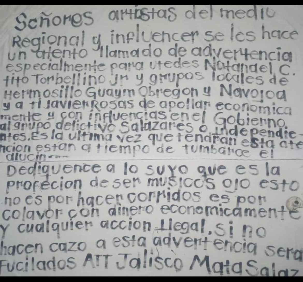 #ÚLTIMAHORA Emiten medidas cautelares para el cantante de corridos tumbados, Nathanael Cano; luego de que fue amenazado con mantas en una escuela de Cecytes en #Hermosillo, así lo confirma el titular de la Fiscalía , Gustavo Salas .