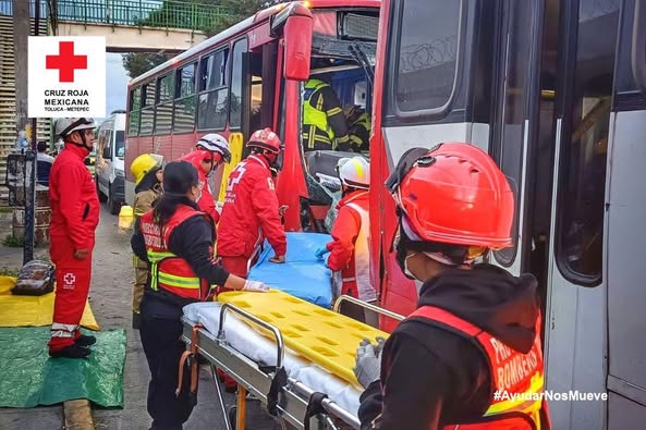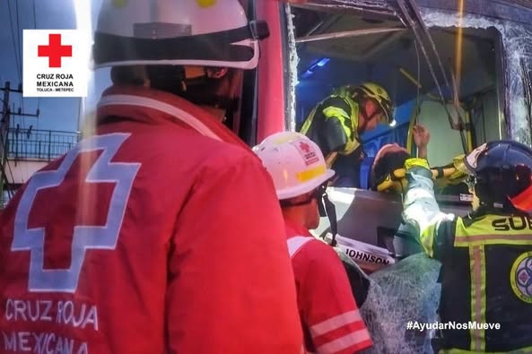 Al lugar acudieron cuatro ambulancias y un camión de rescate de la Cruz Roja Mexicana, pertenecientes a las delegaciones Toluca y Metepec, así como elementos del Servicio de Urgencias del Estado de México (SUEM) y del Cuerpo de Bomberos. Las labores de auxilio se enfocaron en atender a los pasajeros afectados, quienes en su mayoría presentaban golpes contusos y crisis nerviosas.