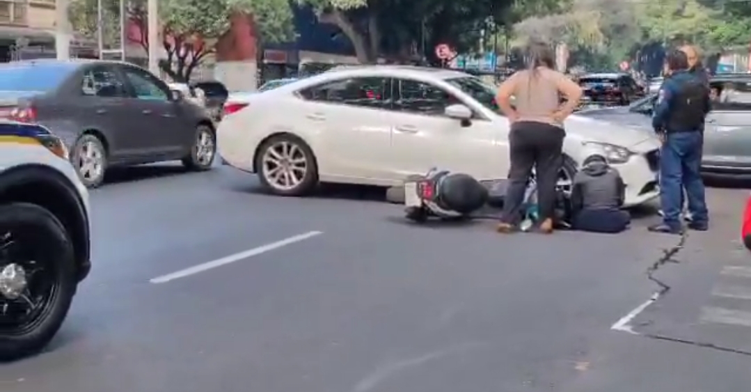 Choque entre moto y auto deja a mujer lesionada en Narvarte