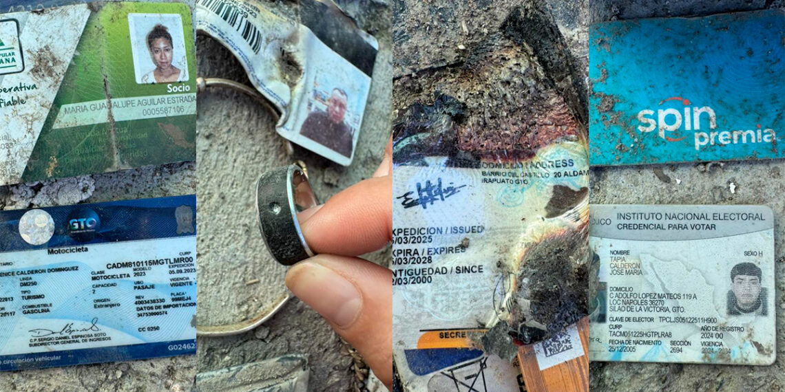 Durante la exploración se encontraron restos de cuatro hombres y una mujer, además de objetos personales que podrían facilitar la identificación de las víctimas. Entre ellos destacan prendas de vestir, celulares, anillos, cadenas, zapatos y gorras. También se localizaron documentos oficiales: