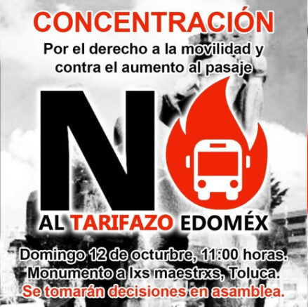 Toluca está al rojo vivo. Este domingo 12 de octubre, cientos de ciudadanos saldrán al Monumento a los Maestros para protestar por el aumento del pasaje en el Estado de México: de 12 a 14 pesos a partir del 15 de octubre.