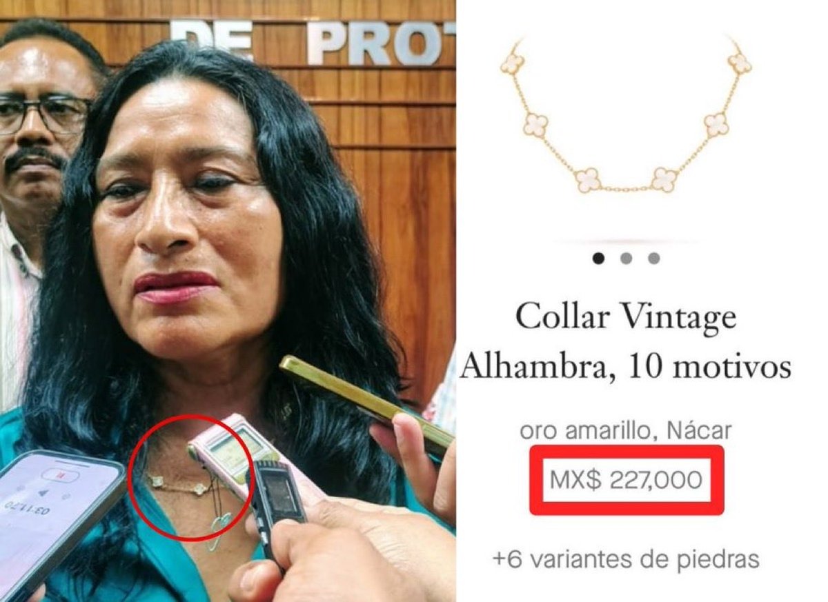 La pieza, identificada como un modelo Van Cleef Vintage Alhambra, forma parte de una exclusiva colección usada por celebridades internacionales. El accesorio fue visto en un evento reciente y rápidamente generó críticas en redes sociales por el contraste entre su ostentación y la precaria situación que atraviesan los damnificados de Acapulco.