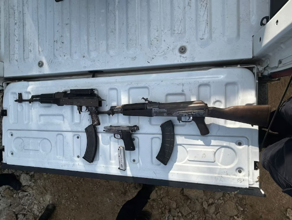 Los elementos de seguridad localizaron el vehículo en el barrio de Los Shiperes, en la calle Alcatraz. En ese momento, los ocupantes intentaron huir, por lo que los agentes realizaron una maniobra para detener su avance. Luego solicitaron una revisión del automóvil, lo que permitió asegurar varios rifles de asalto, una pistola abastecida, cargadores, cartuchos y 44 bolsas con una sustancia similar a metanfetamina.